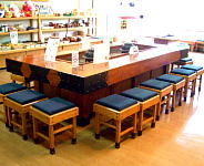 ![]() 食堂にて茶そばや郷土の味(朴葉寿司・飛騨牛)をお楽しみ下さい。 |